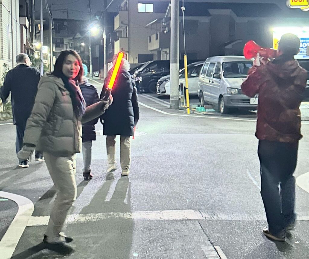 年末は、夜警パトロールで町会回りや