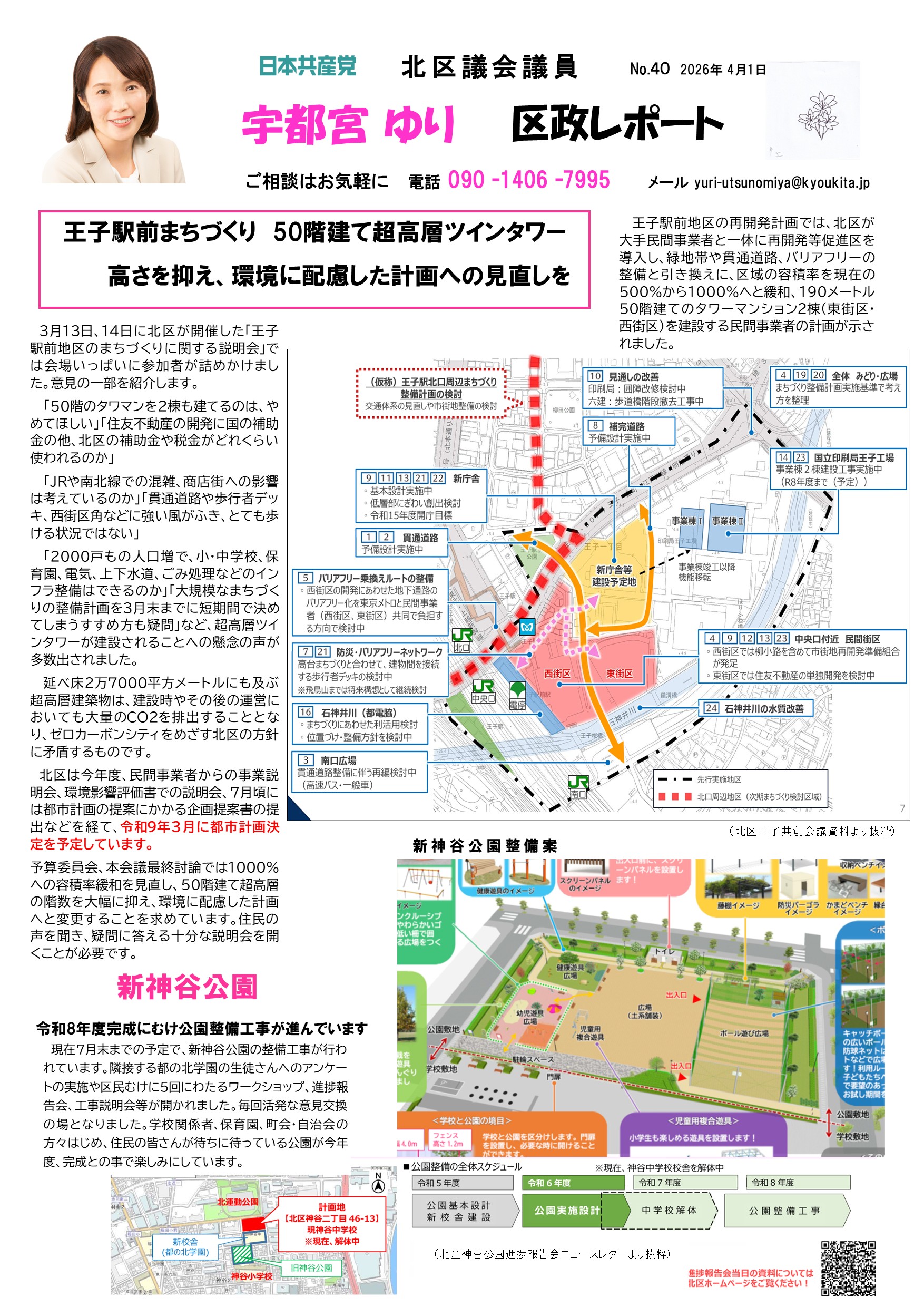 北区神谷で生まれ、神谷で育ちました。温かい人情のあふれる北区を、より良い町にしたいと心から思っています。父親である宇都宮章の3期12年の議会活動、地域課題をしっかりと受け継ぎ、地域のみなさま方の要望に応えることができるよう頑張る決意です。